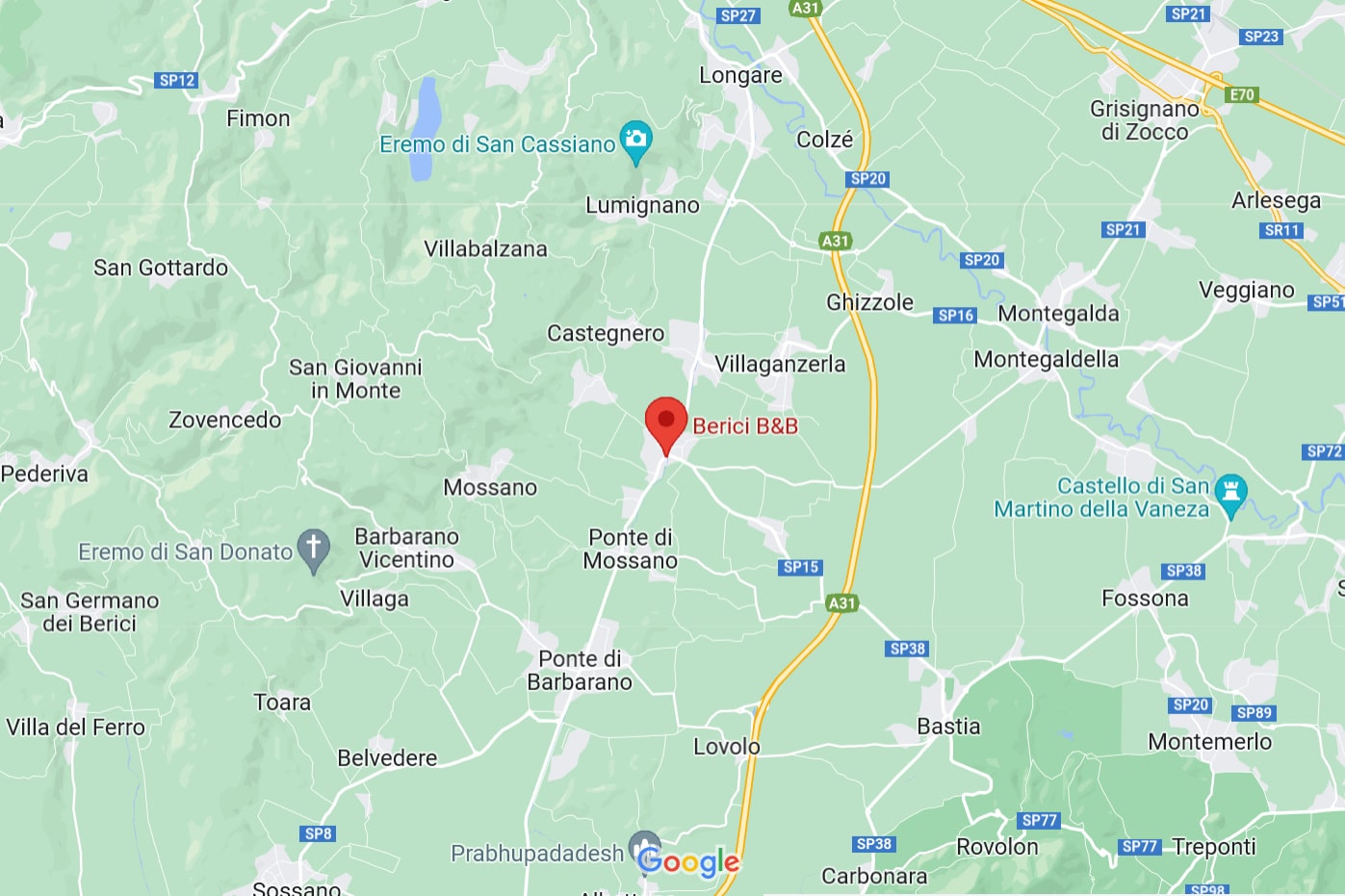 Aereo: gli aeroporti più vicini sono quelli di Venezia, Marco Polo Tessera (VCE), www.veniceairport.it o di Treviso, A. Canova (TSF), www.trevisoairport.it per affittare un’auto o prendete il treno fino a Vicenza.