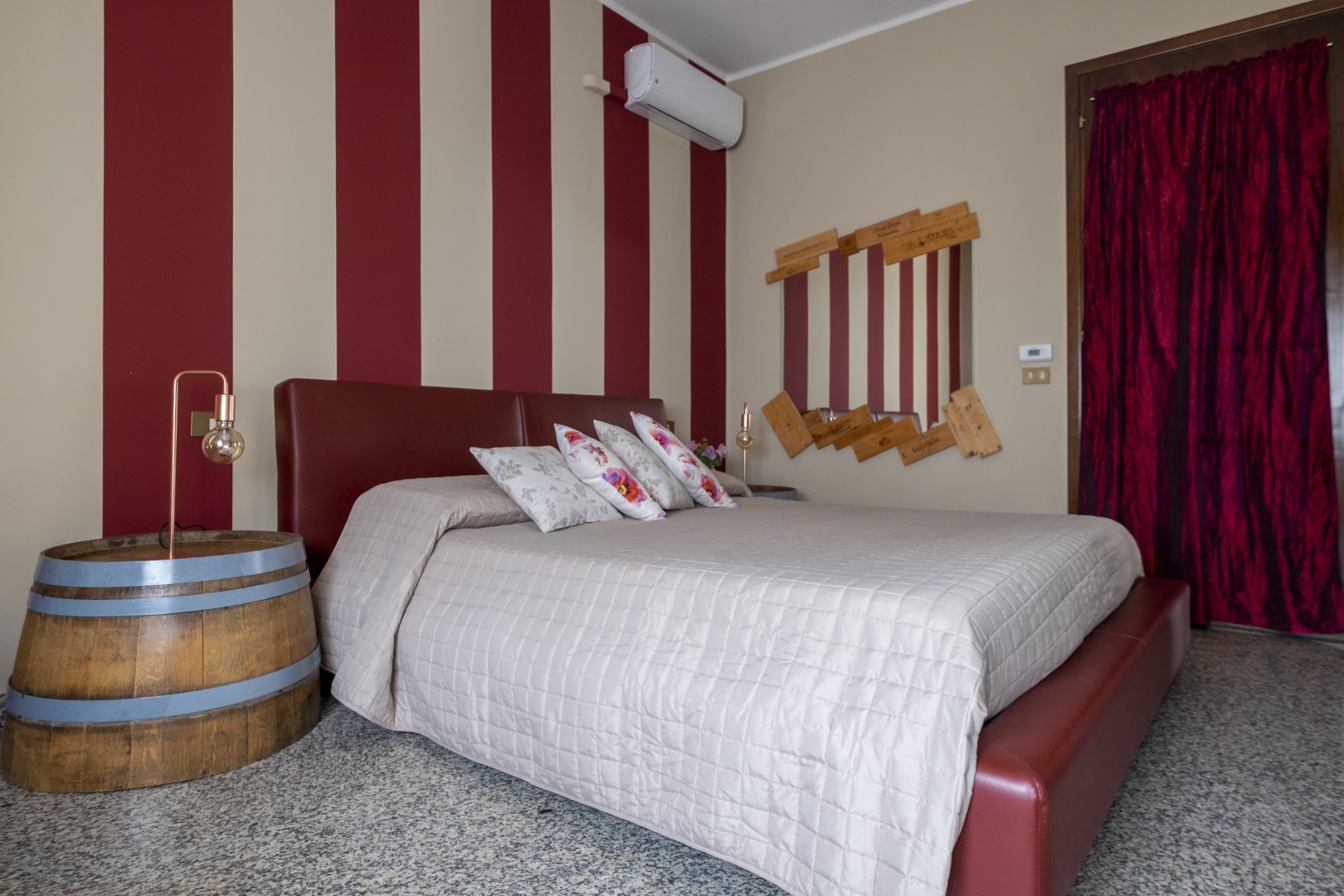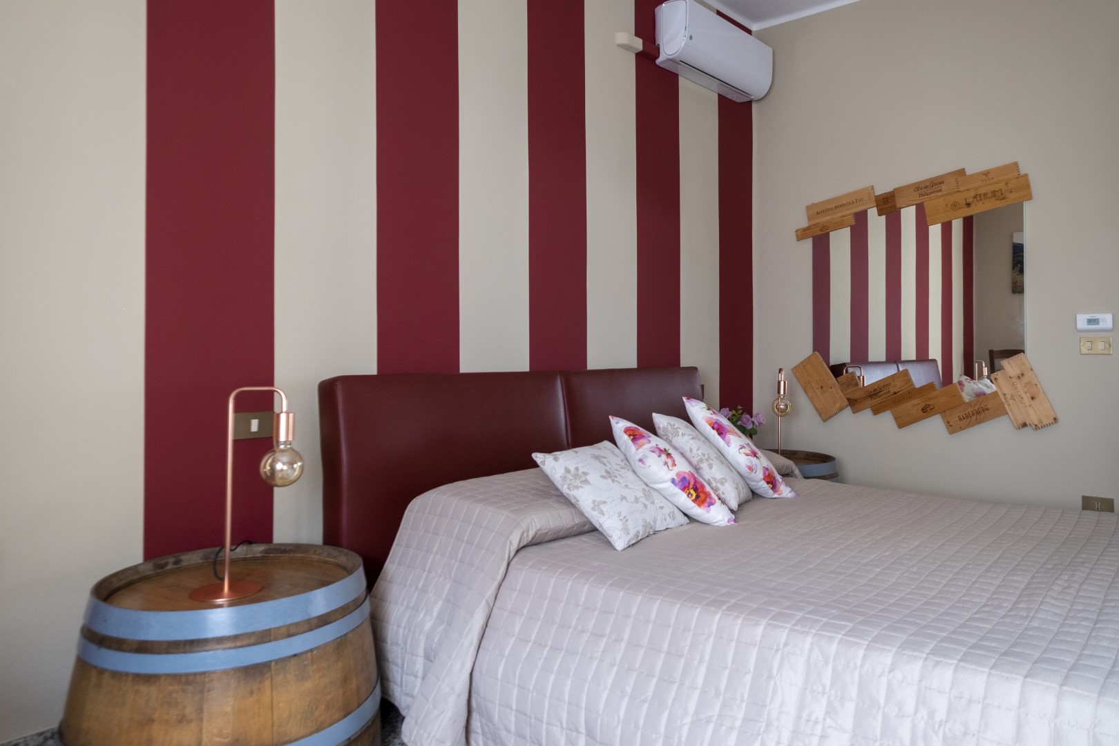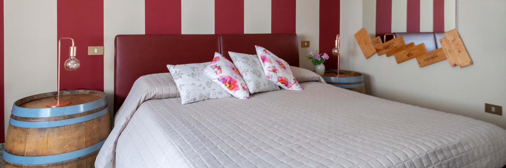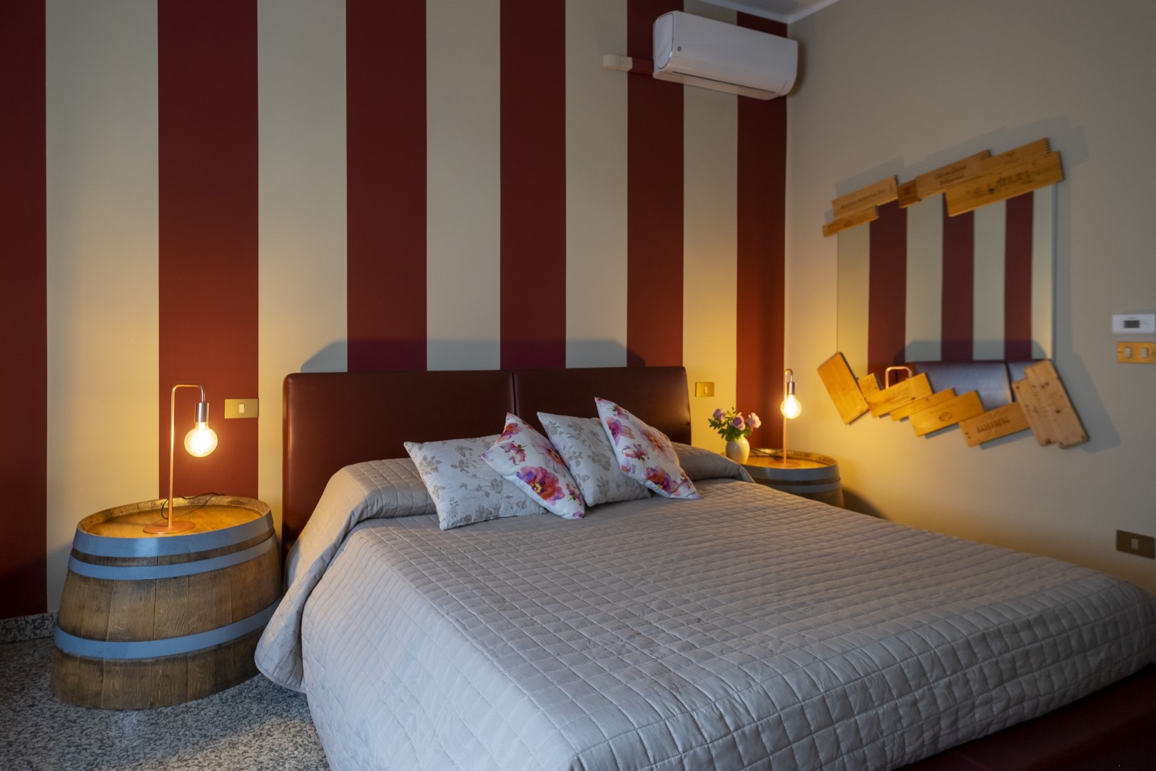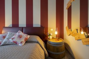 Arredamento originale con barrique riutilizzata per realizzare i comodini.