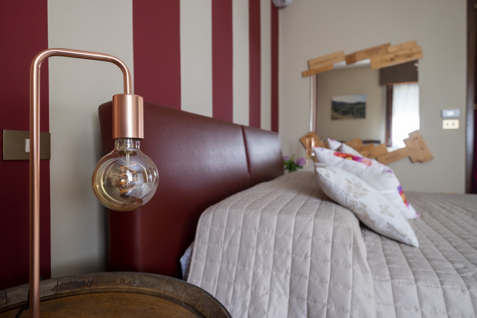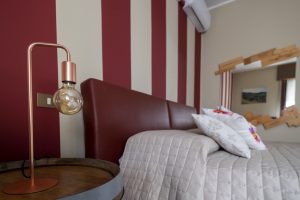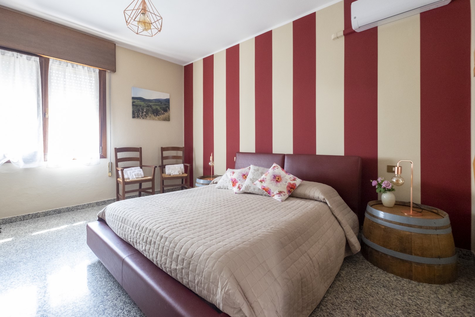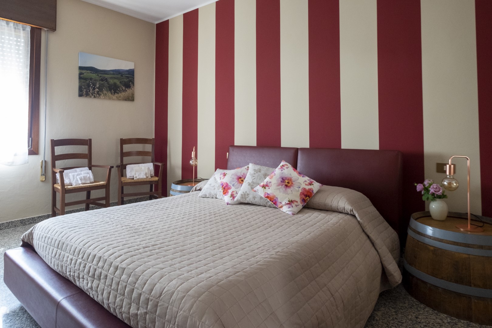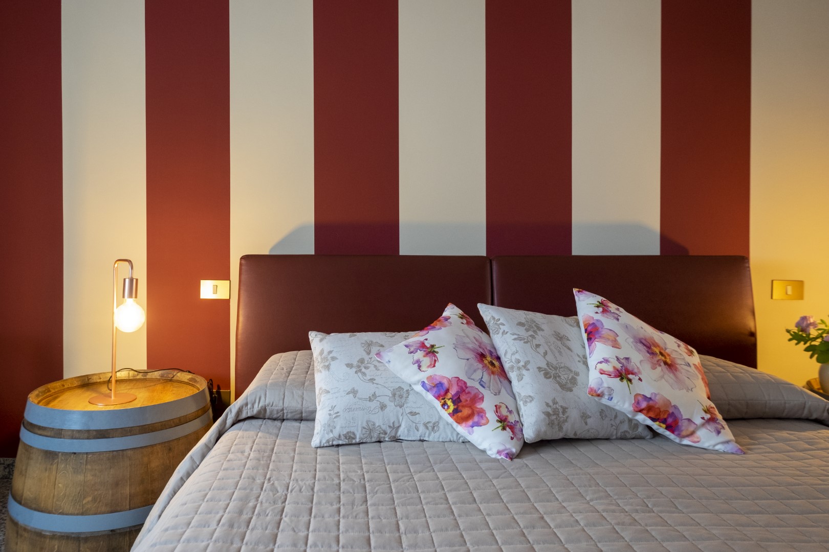 Arredamento originale con barrique riutilizzata per realizzare i comodini.